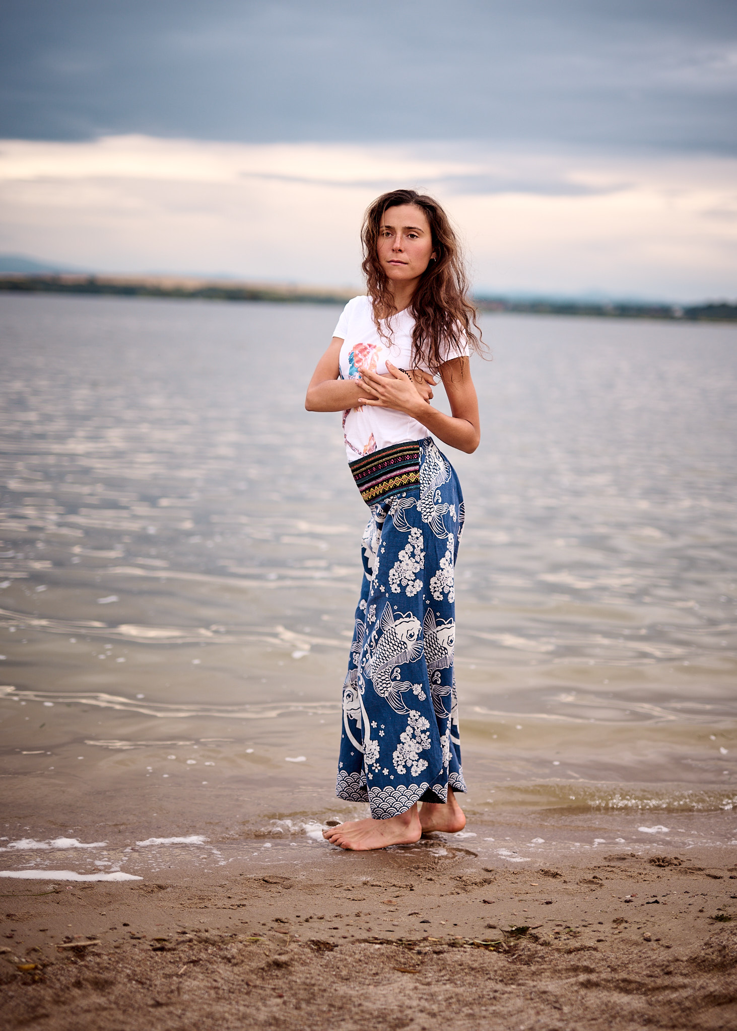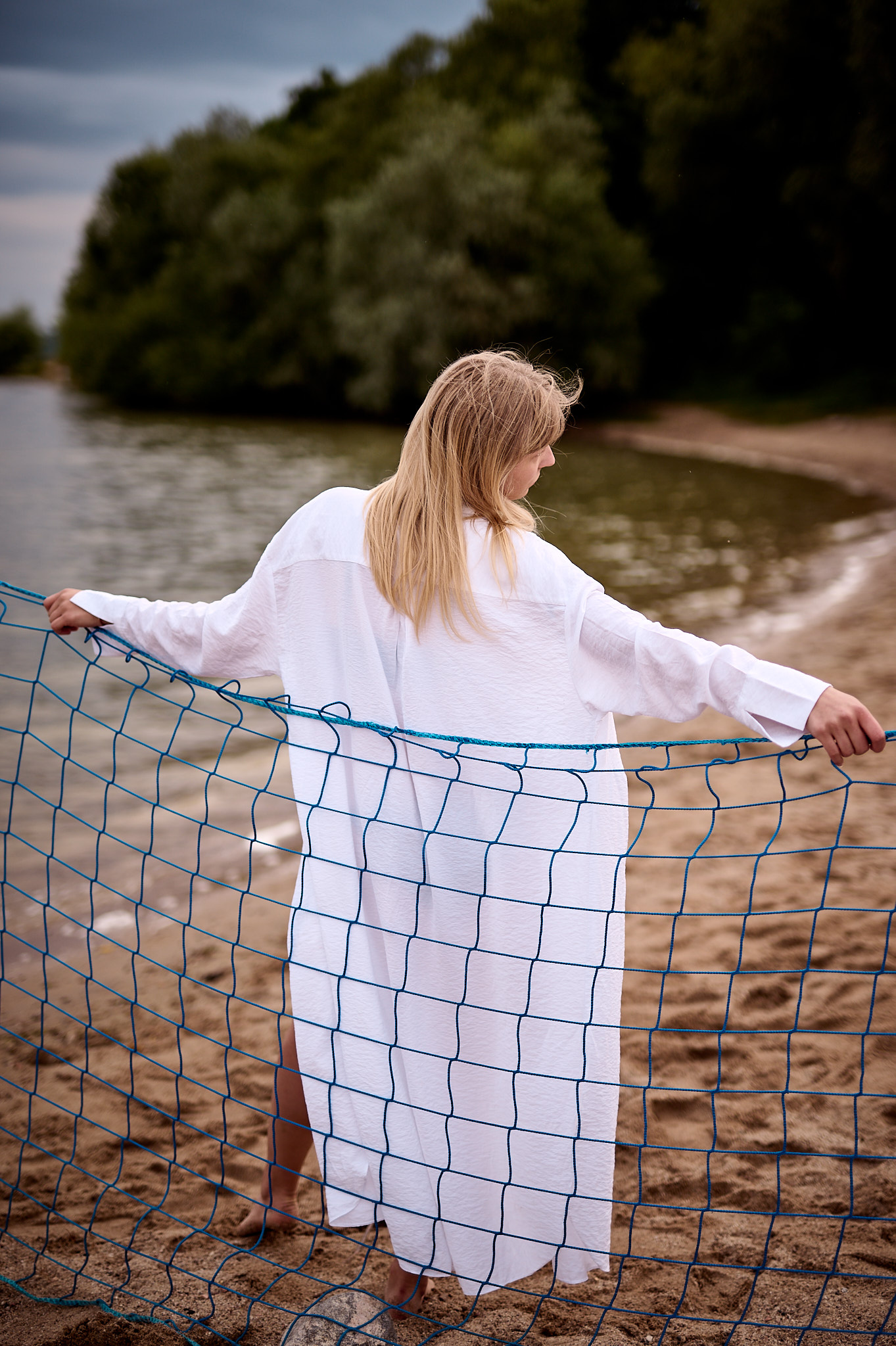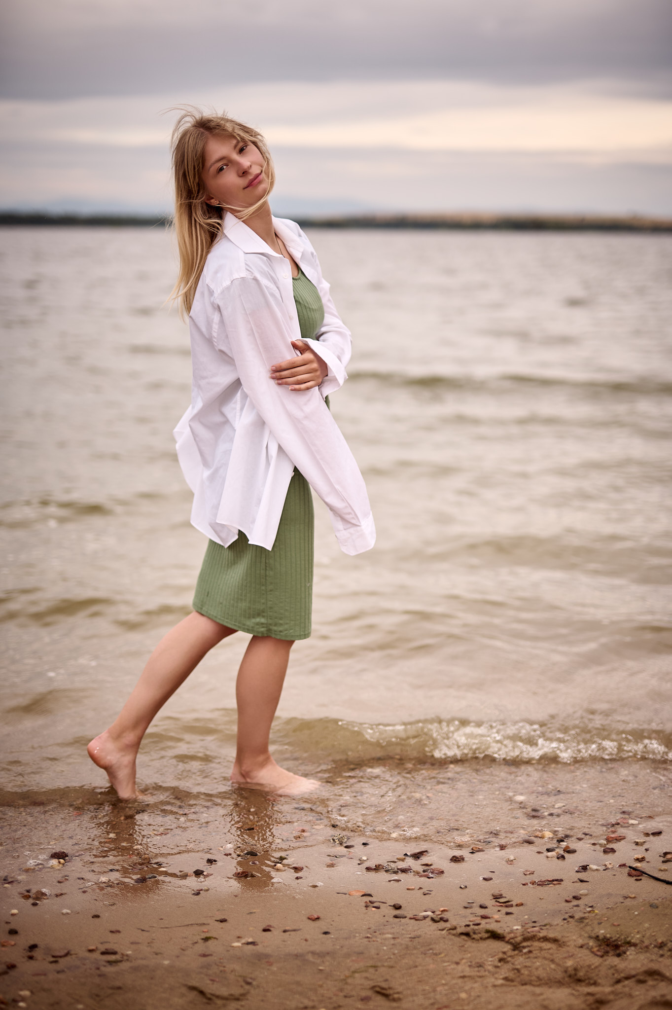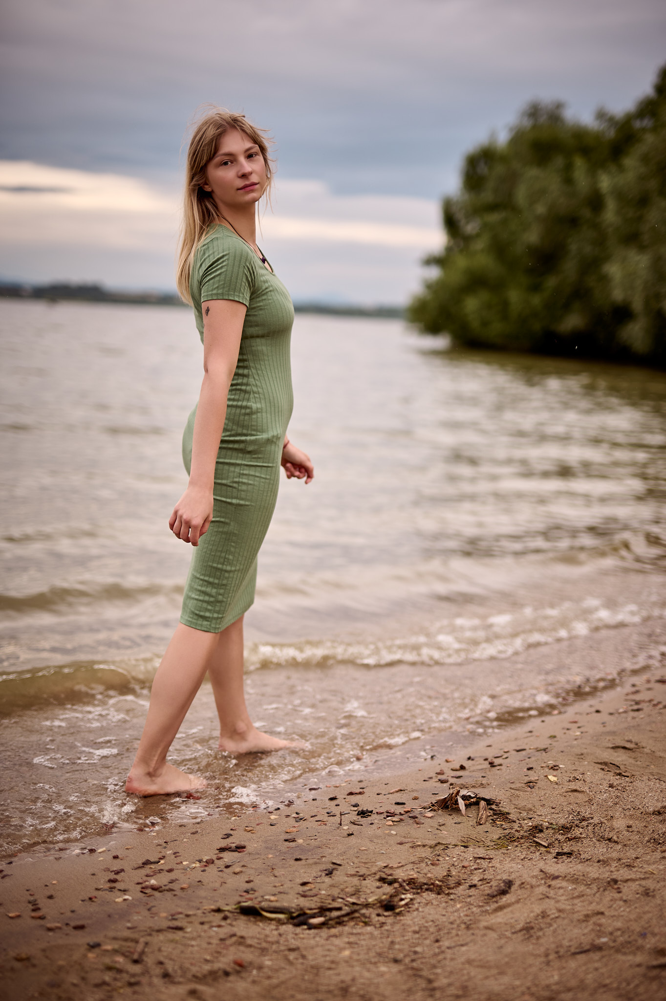 Letni dzień nad Zalewem Mietkowskim rozpoczął się spokojnie – słońce co chwilę wyłaniało się zza miękkich, rozproszonych chmur, nadając krajobrazowi ciepły, złotawy odcień. Temperatura oscylowała w granicach komfortowego ciepła, a delikatny wiatr niósł ze sobą zapach wody i pobliskiej roślinności. Idealne warunki na sesję fotograficzną w naturalnym plenerze – światło było miękkie, nieco rozproszone, co pozwalało uzyskać subtelne cienie i naturalne kolory.
