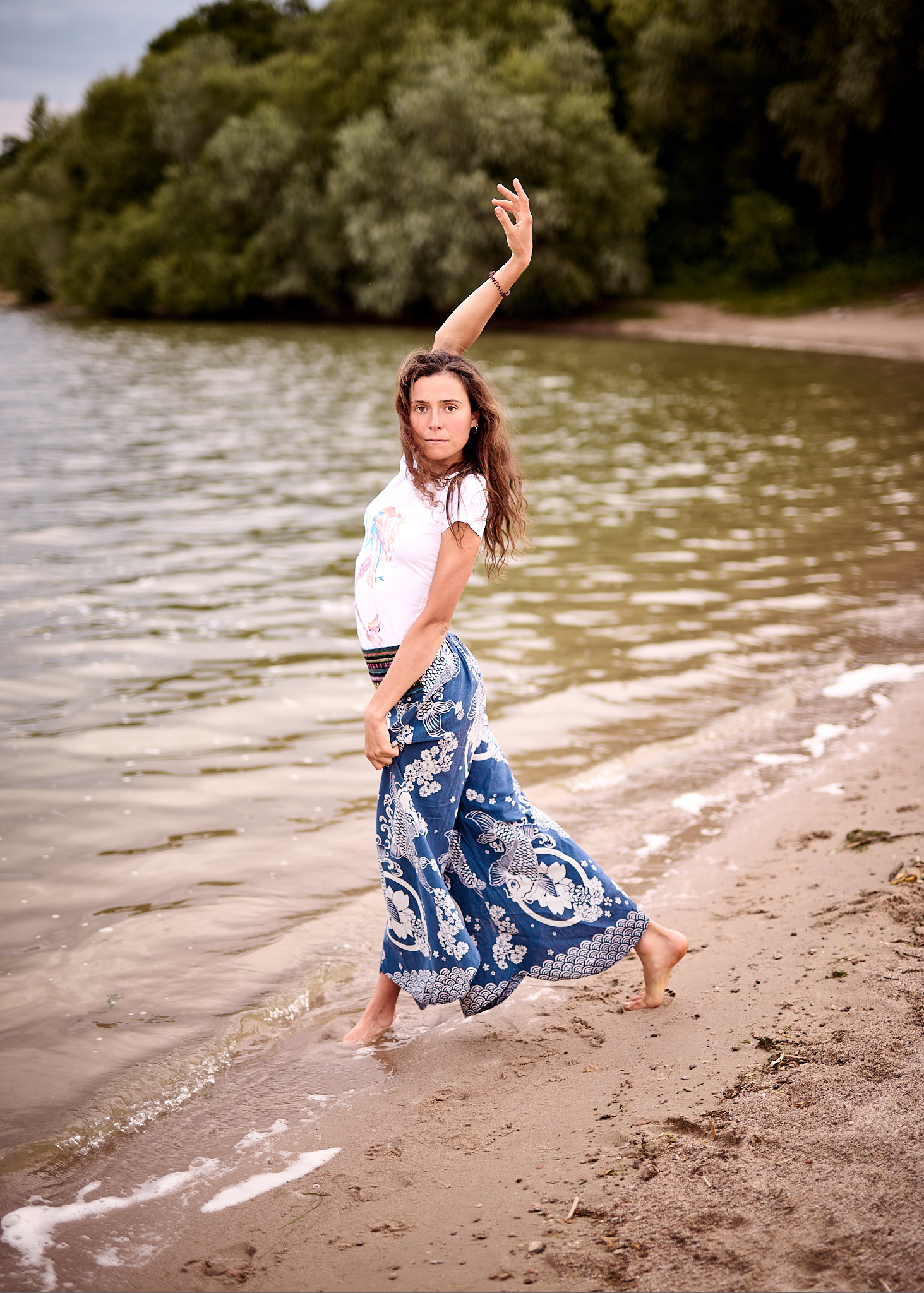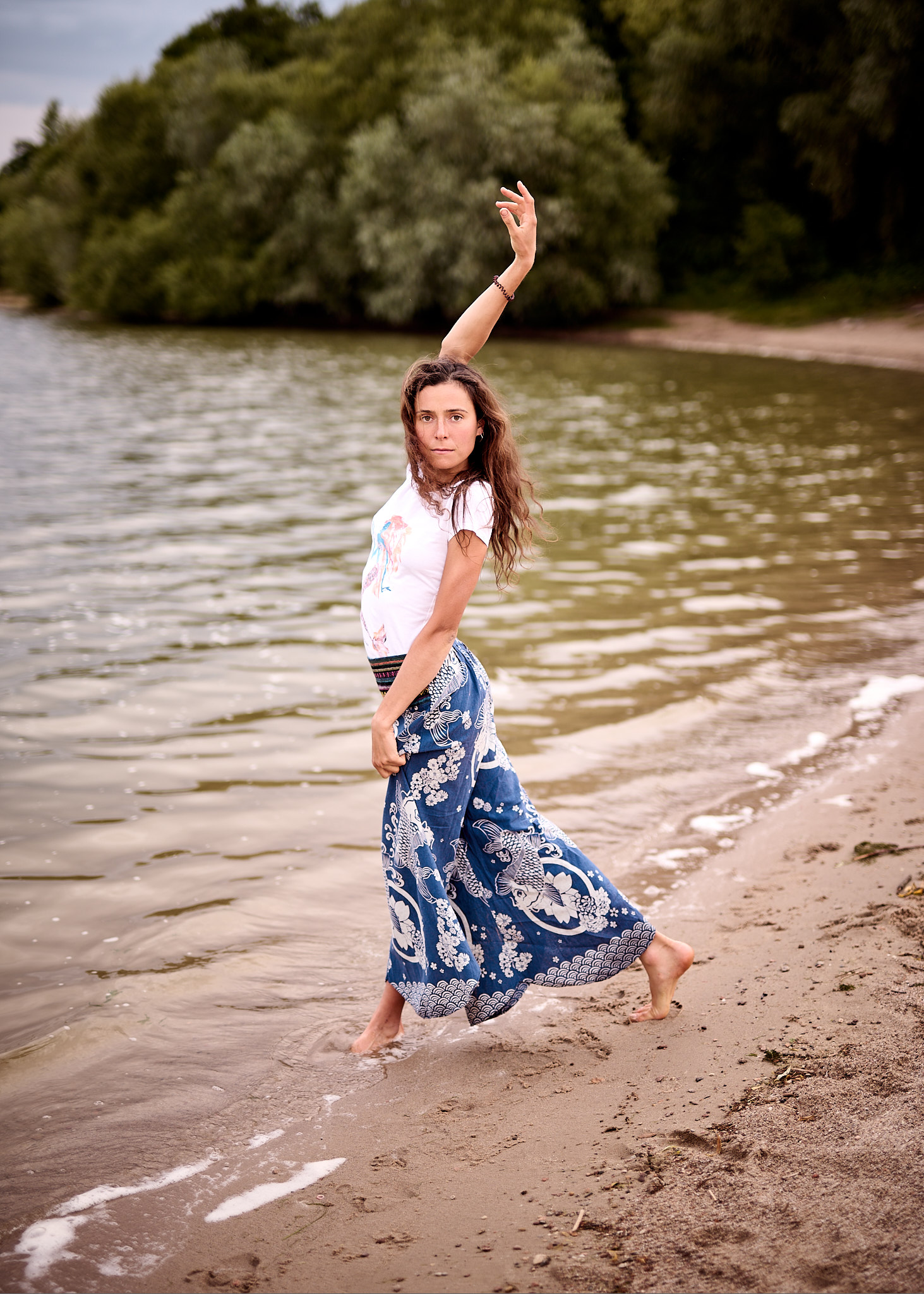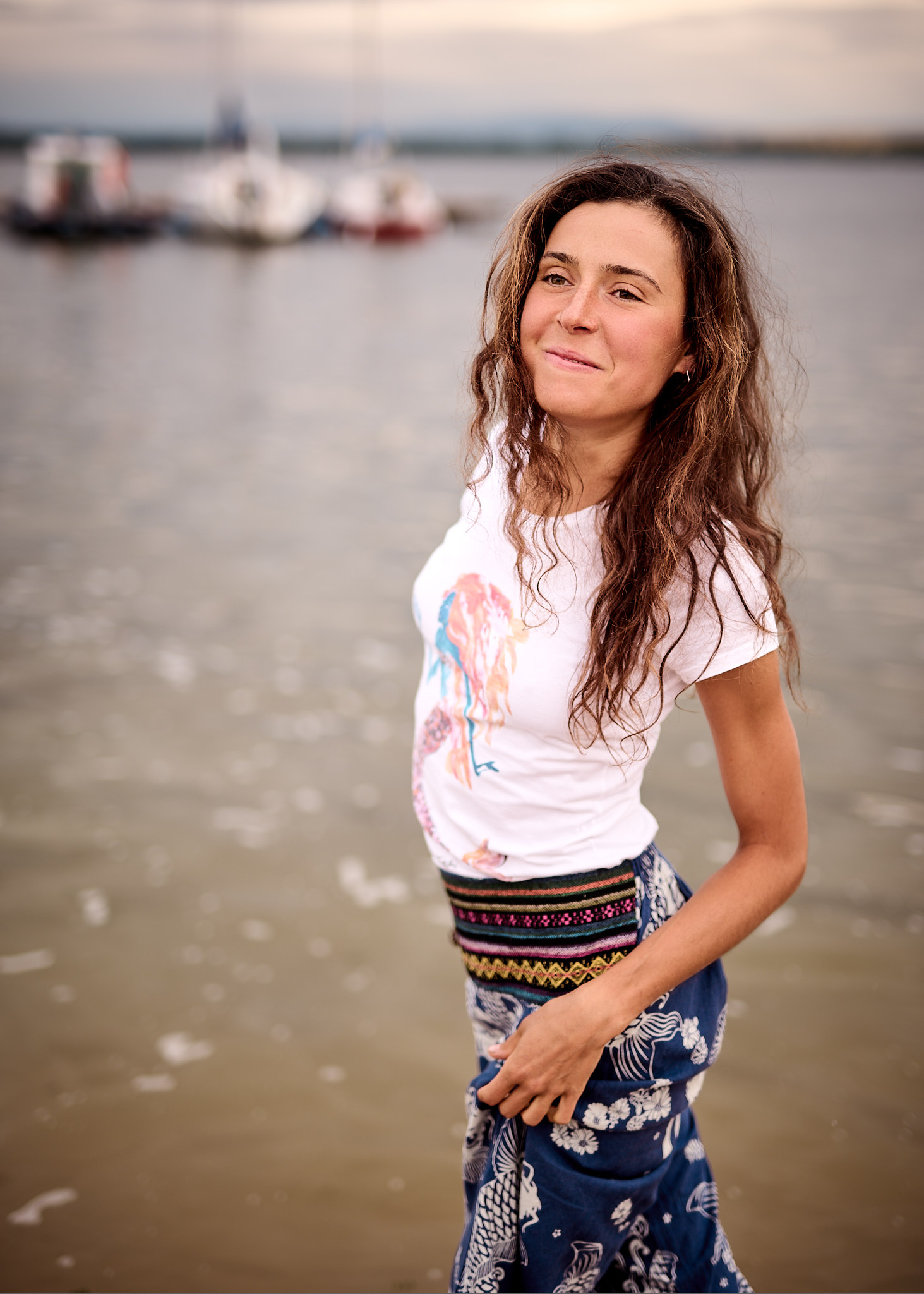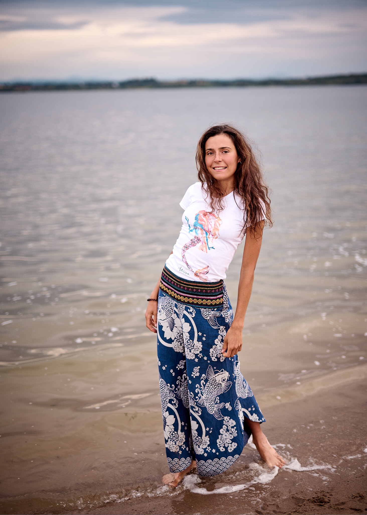 Letni dzień nad Zalewem Mietkowskim rozpoczął się spokojnie – słońce co chwilę wyłaniało się zza miękkich, rozproszonych chmur, nadając krajobrazowi ciepły, złotawy odcień. Temperatura oscylowała w granicach komfortowego ciepła, a delikatny wiatr niósł ze sobą zapach wody i pobliskiej roślinności. Idealne warunki na sesję fotograficzną w naturalnym plenerze – światło było miękkie, nieco rozproszone, co pozwalało uzyskać subtelne cienie i naturalne kolory.