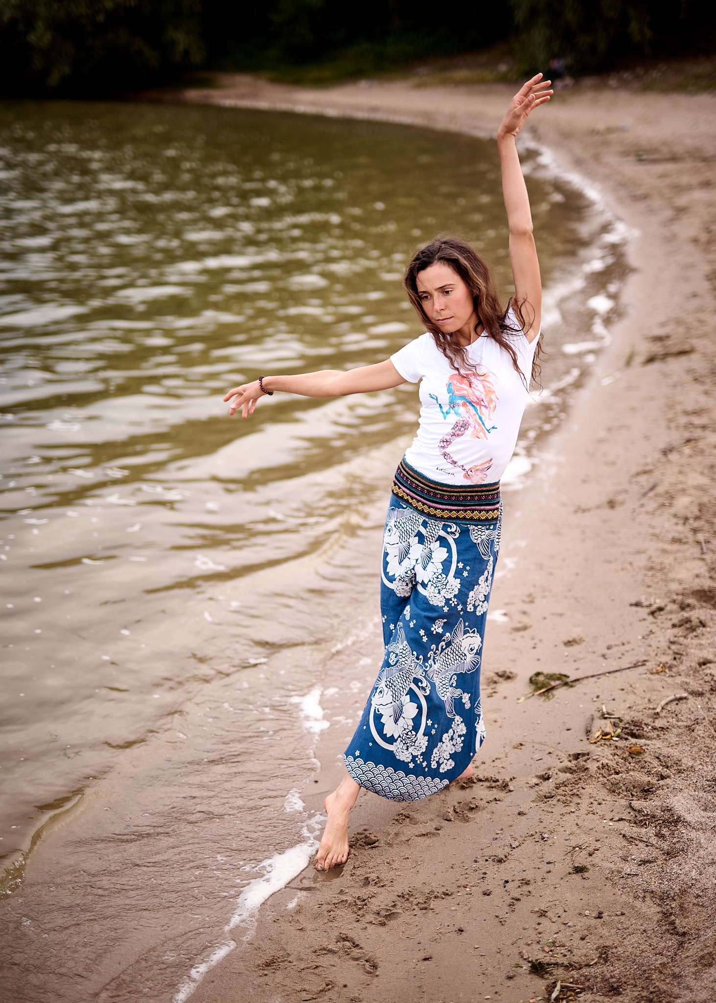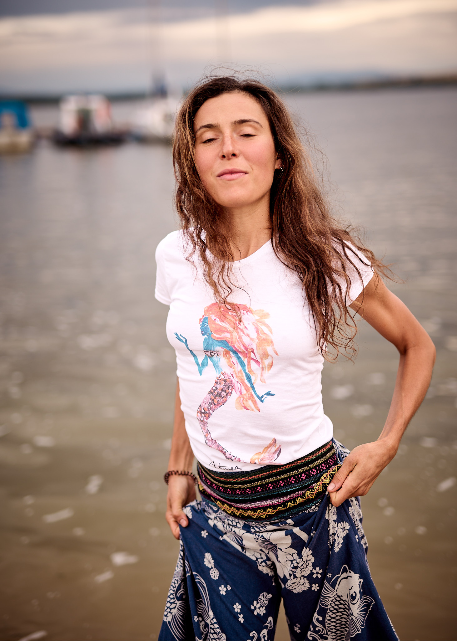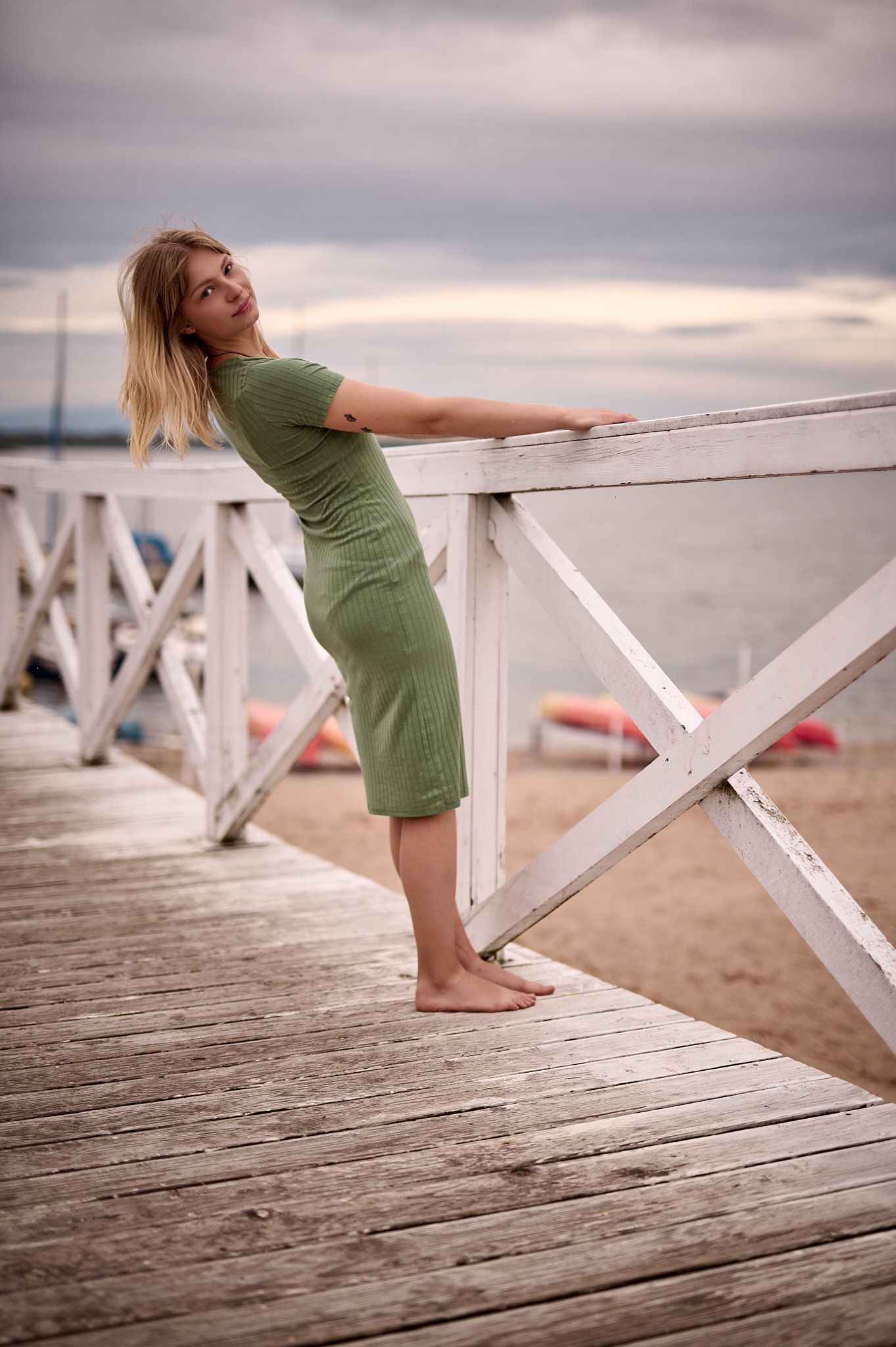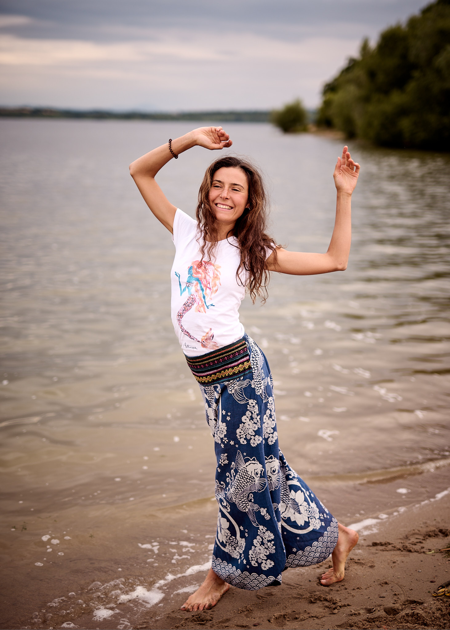 Letni dzień nad Zalewem Mietkowskim rozpoczął się spokojnie – słońce co chwilę wyłaniało się zza miękkich, rozproszonych chmur, nadając krajobrazowi ciepły, złotawy odcień. Temperatura oscylowała w granicach komfortowego ciepła, a delikatny wiatr niósł ze sobą zapach wody i pobliskiej roślinności. Idealne warunki na sesję fotograficzną w naturalnym plenerze – światło było miękkie, nieco rozproszone, co pozwalało uzyskać subtelne cienie i naturalne kolory.